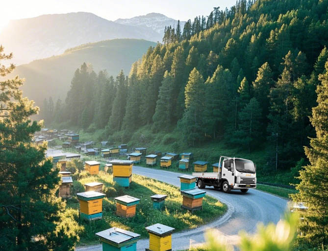 從山間花海到千家萬戶的餐桌,江淮1卡帥鈴陪伴馬師傅,運輸著一車車蜂蜜,譜寫出天山腳下的甜蜜樂章。