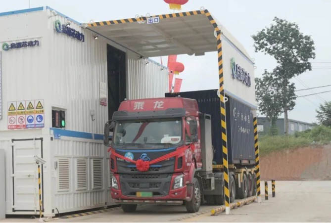 本次交付的乘龍H5新能源牽引車,正是乘龍品牌的新能源明星產(chǎn)品,其采用整車輕量化設(shè)計(jì),并應(yīng)用黃金動(dòng)力鏈,配備啟源284千瓦時(shí)/400千瓦時(shí)動(dòng)力電池,其能量密度高達(dá)165Wh/kg,充放電效率高達(dá)95.9%。同時(shí),基于充換一體模式設(shè)計(jì),車輛可5分鐘快遞換電,實(shí)現(xiàn)了輕量高效、經(jīng)濟(jì)省電、品質(zhì)可靠等諸多優(yōu)勢(shì)的有機(jī)統(tǒng)一。