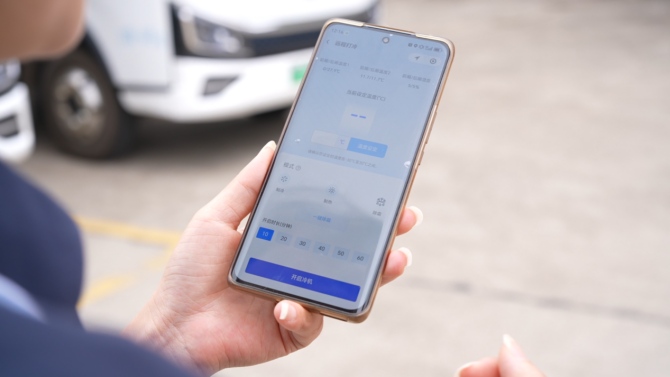 其次,為確保冷鏈“全程不斷鏈”,宇通以技術組合拳保障溫度穩定。一是遠程預冷,司機在家即可提前啟動制冷,到公司直接裝車,極大提升運營效率;二是邊充電邊打冷,確保在充電期間車廂也能持續制冷。整車溫度波動更可精準控制在±1℃,同時,通過安睿通小程序,實現全程可視化溫控。