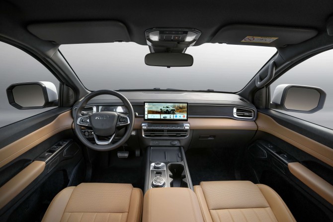 相較于承載式車身,獨立梯形車架能獨立承擔載荷與行駛沖擊,從根源上解決了長期重載導致的車身變形、異響等痛點,這對于常年運輸建材、農機的用戶而言,無疑是“剛需級”的保障。再搭配雙叉臂前懸、鋼板彈簧后懸及全系標配的265寬胎,形成了一套完整的重載解決方案,這種“回歸工具本質”的產品思維,遠比花哨的設計更能打動務實的創富群體。