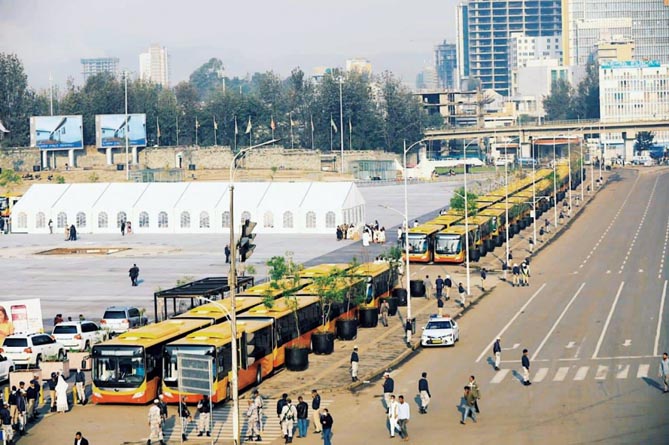 埃塞俄比亞首都亞的斯亞貝巴市街頭的宇通公交車