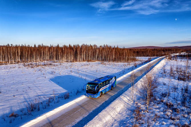 12月10日,“‘踏冰馭雪戰(zhàn)極寒’宇通新能源客車(chē)勇闖中國(guó)寒冷兩極” 活動(dòng)在黑龍江漠河舉行,包括公路新能源C11E、C8E以及公交新能源宇光E8 MAX多款車(chē)型參與挑戰(zhàn)。期間,宇通新能源客車(chē)從我國(guó)最北端的“中國(guó)寒極”黑龍江漠河,開(kāi)往有著“中國(guó)冷極”之稱(chēng)的內(nèi)蒙古根河,在極寒工況下模擬用戶實(shí)際用車(chē)場(chǎng)景,用實(shí)際表現(xiàn)驗(yàn)證新能源商用車(chē)性能極限和技術(shù)邊界。
