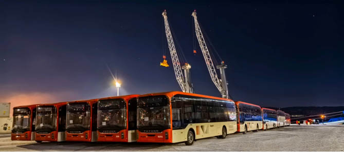 據悉,這批新能源訂單包含高端旅游客車、高端純電公交及新一代純電城間車等多款高端新能源系列產品,宇通以多樣化的產品矩陣贏得了當地市場的深度認可。依托宇通長期沉淀的高端制造經驗和持續提升的科技創新實力,這些車輛不僅全面滿足了歐洲嚴苛的安全標準和技術法規,并充分結合本地化需求進行了定制化開發與配置調整,能夠從容應對挪威復雜多變的氣候環境及運營工況,精準契合當地市場需求,為當地公共交通高質量發展注入新的活力。例如,針對挪威冬季寒冷漫長的氣候特征,宇通客車聚焦新能源車輛低溫運行難題,在交付車輛上采用了諸多高寒配置和多重保暖技術,以確保車輛在極寒環境下的運營狀態和性能表現,進一步為客戶創造多樣化價值增量。