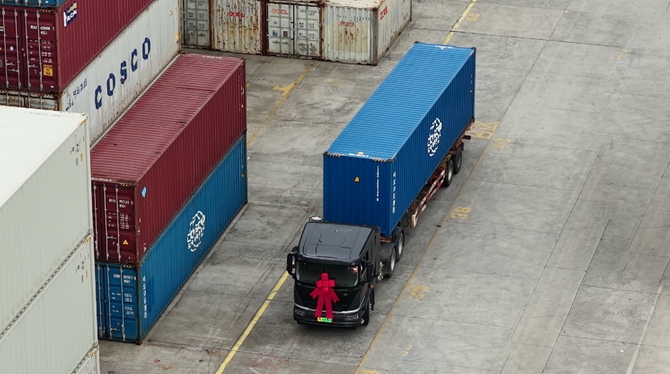 同時,上海虹口區發改委、虹口區生態局、上海市電力公司、三峽上海院電力規劃院、上海環境能源交易所相關領導及代表參加活動,并通過視頻連線,共同見證首批 “零碳車隊”發車儀式。 “雙碳”目標下,新能源集裝箱卡車作為綠色物流的核心裝備,其規模化應用已成為交通領域減排的必然選擇。比亞迪作為全球唯一一家同時掌握電池、電機、電控、芯片及整車技術的新能源汽車企業,在商用車特別是電動重卡領域,布局早、技術硬、市場經驗豐富,已在港口物流、商品物流、建筑物流等細分場景進行大規模商業化運營。 本次試運營的比亞迪純電動重卡Q3,為565度長續航版和382度短續航版,車輛搭載自研刀片電池、輪邊驅動系統和高集成電控等核心技術,通過高安全、響應快、效率高等優勢,與E電充的智慧能源交通互聯網高效對接,滿足港口重載運輸與城市配送需求,實現物流車輛與電網的能量雙向流動管理。 目前比亞迪重卡已投入洛杉磯港口、寧波大榭港等場景運行,以“三電統一”、更快反應、更高效率、更優適配等高效連接車輛與港口、物流區的智能作業系統,實現云端平臺監控、車輛調度、自動駕駛等常規操作,不僅有效提高運輸效率,也降低了人力成本。 今后,比亞迪將繼續攜手更多合作伙伴,以更優品質的新能源車輛與整體解決方案,助力港口運輸、城配物流的綠色低碳發展。