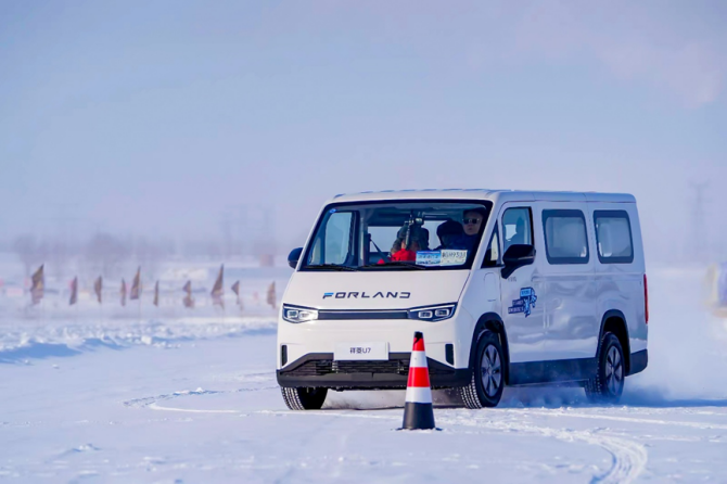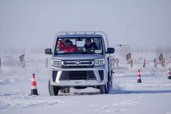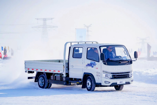 在連續、變速的制動、環路測試中,祥菱U7動力輸出平穩,啟停精準,轉向輕盈。事實上,這樣的卓越表現得益于其“U質”的動力系統。首先補能方面可圈可點,其搭載的寧德時代電池在日常運營環境下通過2C超快充僅16分鐘充電即可達到30%-80%的蓄能,此次在極寒條件下充電效率依然在線。其次,整車的液冷液熱系統可以保持-35℃至65℃的超寬工作溫域,確保電池在極端低溫下活性穩定,無疑為城配物流用戶的冬季出勤率帶來極大保障。實測中,匹配福田自研電池系統的祥菱U7,在低溫環境下表現功率依舊出色,同時具備更“U越”的六合一動力總成優勢,以及EHB能量回收功能和超低風阻系數,進而保持了超低能耗,這些技術及配置是其參與冰雪綜合性能測試的底氣。