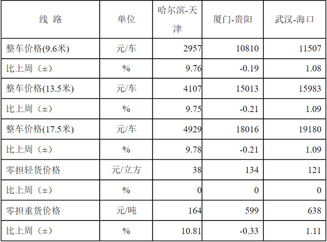 表1 本周部分線路平均價格及環(huán)比情況對比