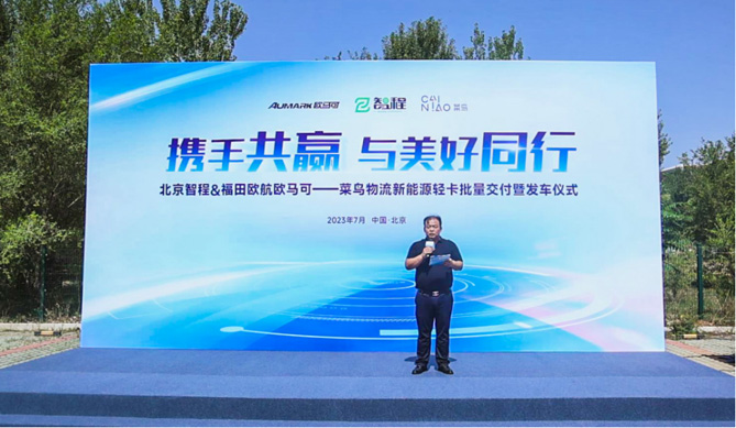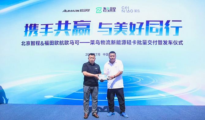 【北京智程&福田歐馬可向菜鳥物流交付歐馬可智藍新能源輕卡】