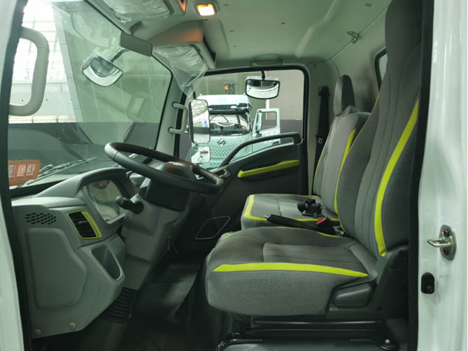 內飾盡顯輕奢,乘龍L2V電動輕卡的主駕駛座椅采用的是機械減震,可以緩解來自地面的顛簸。多功能方向盤并采用圓形設計,下方為平直式,對于身材比較魁梧的卡友更加友好。