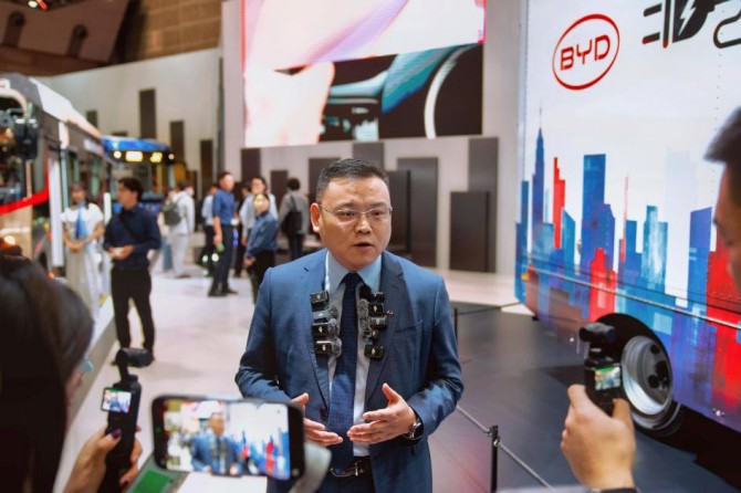 比亞迪商用車事業(yè)部總經(jīng)理田春龍接受媒體采訪