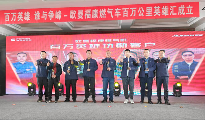 福田康明斯首批6位“百萬公里無大修”燃氣機用戶齊聚現場,共同見證了福康“百萬英雄匯”的成立。此舉也向行業宣布,未來,福康天然氣發動機“百萬公里無大修”將成為常態。
