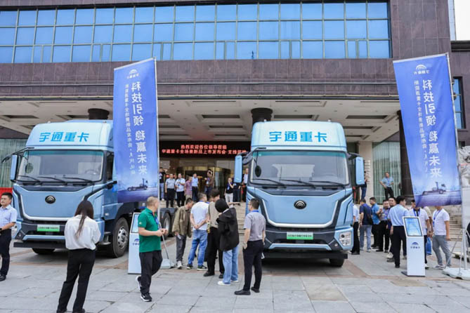 宇通重卡營銷公司副總經理徐輝、中國汽研整車測評研究部主任徐磊、中汽兄弟副總經理楊金國等領導,與廣大客戶、合作伙伴、媒體朋友共同見證了這一重要時刻。