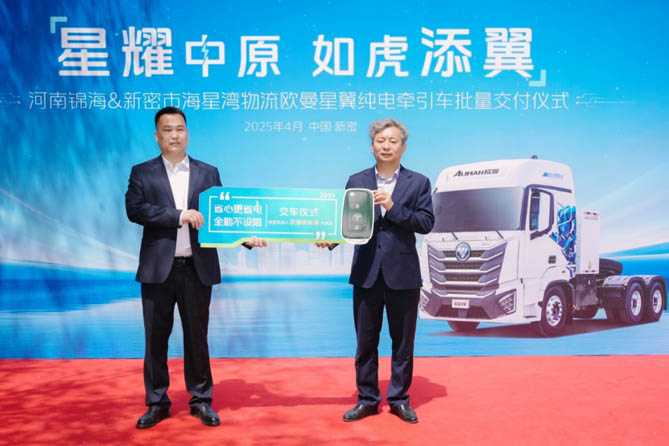 2025年4月17日,“星耀中原 如虎添翼——歐曼星翼純電牽引車批量交付暨戰(zhàn)略簽約儀式”在河南新密市隆重舉行。現(xiàn)場達成150臺歐曼星翼400kWh純電牽引車的戰(zhàn)略合作簽約,50臺順利交付。此次合作簽約及交車,不僅標(biāo)志著歐曼通過產(chǎn)品創(chuàng)新持續(xù)為客戶提供精準(zhǔn)解決方案,更為以河南為首的中原干線物流和區(qū)域集散運輸市場提供更經(jīng)濟、更高效、更舒適的運營“利器”,書寫綠色運力新篇章。