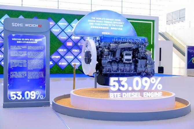 與兩臺“老伙計”擺放在一起的是濰柴2024年發(fā)布的全球首款本體熱效率53.09%柴油機,創(chuàng)下本體熱效率世界紀錄。三臺機器共同濃縮成濰柴79年“從可靠到領先”的進階之路。