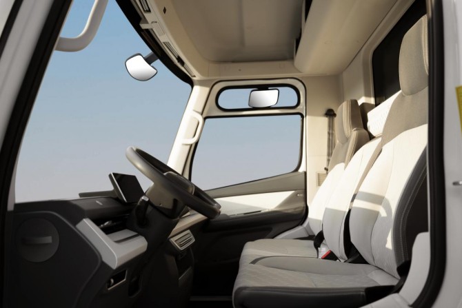 空間上,福田啟明星產品駕駛室寬2120mm,貨廂內寬2100mm,前窄后寬設計降風阻低至0.3,加大輪距提升抓地力,車內標頂1.8米、高頂2.26米,兼顧載貨與舒適性;架構創新是其又一大亮點,首創800V平臺雙電機中央分布式架構,支持2C快充,18分鐘從20%充至80%,165度電續航607km,雙電機控扭矩使轉彎半徑減20%;能效躍升方面,扁線油冷電機效率95.7%,百公里能耗降6kWh,年省電費6000元,每天多拉貨1.2小時,為用戶帶來了實實在在的經濟效益。