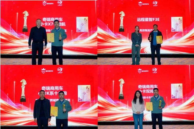 奇瑞商用車小卡X7長續(xù)航版 新能源微卡銷量桂冠獎,遠程星智F3E 獲得 高效物流產(chǎn)品獎,奇瑞商用車小卡K系十年駒獲得新能源微卡跨城續(xù)航先鋒獎,奇瑞商用車小卡雙排王獲得新能源微卡市場標桿獎。