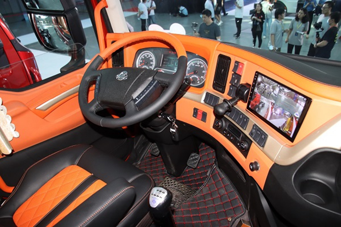 乘龍H5 載貨車與H7牽引車兩款車型基于原車內飾進行了多達十余項的改裝升級,包括座椅套色、雙床、儀表臺、方向盤、門板的包覆,以及上車手扶的軟化包裹、木地板總成、主副駕專用皮質腳墊、全車窗簾,甚至配備了車載專用冰箱、舒適座椅(通風、加熱、按摩)、行車四路監控,全方位的提升了駕駛室豪華感與舒適性,為廣大卡友們帶來更優的駕乘體驗。