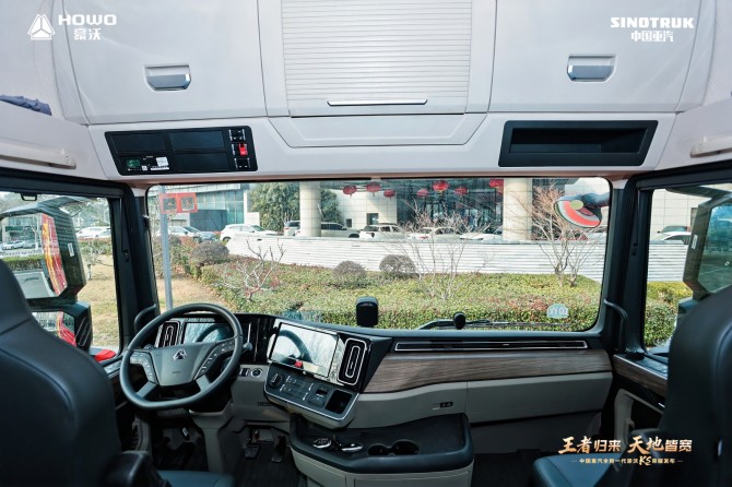 何為真正的舒闊?全新一代豪沃KS以精準至毫米的匠心回應——大空間,容萬物,攬巨富!其駕駛室一切細節(jié)均打造圍繞卡友所需,內部縱深2450mm,讓每一次轉身與舒展都從容不迫;2250mm的超寬全景視野,告別盲區(qū)束縛,駕駛休憩更通透;配合2150mm的層高,直立行走不弓腰,取物、整理被褥毫無局促感。不僅如此,駕駛室搭載環(huán)境智能調控,可自動調節(jié)座艙溫度、風量,精準適配不同工況與天氣,時刻保持舒適體感;全場景居家化智能設計,將智能便捷融入休憩、儲物等每一個日常場景,滿足卡友多樣化生活需求,讓駕駛室更有“家”的溫暖。