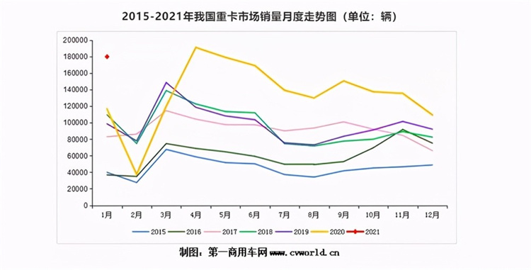 根據第一商用車網報道顯示,2021年1月中國重卡市場預計銷售各類車型18.9萬輛(開票數口徑),同比大幅增長62%,連續10個月刷新單月歷史紀錄。濰柴動力的兩大重要客戶陜重汽和中國重汽合計銷售5.05萬臺,占總銷量的27%。