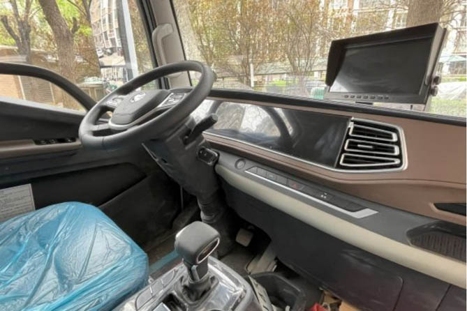 考慮到作業(yè)的環(huán)境和工況相對特殊,傳統(tǒng)動力自卸車長期以來堅(jiān)持采用手動擋變動箱配置。隨著純電動技術(shù)路線的創(chuàng)新,福田瑞沃純電動自卸車在采用自動擋AMT變速箱的基礎(chǔ)上,還進(jìn)一步提升了內(nèi)飾乘用化水平,主駕采用氣囊減震座椅,并加強(qiáng)腿部和腰部的支撐作用,以減緩駕駛疲勞;副駕駛座椅可以放平,為駕駛員提供必要的休息空間;行車儀表和中控屏采用雙聯(lián)屏設(shè)計(jì),具備手機(jī)互聯(lián)、倒車影像、地圖導(dǎo)航等功能。